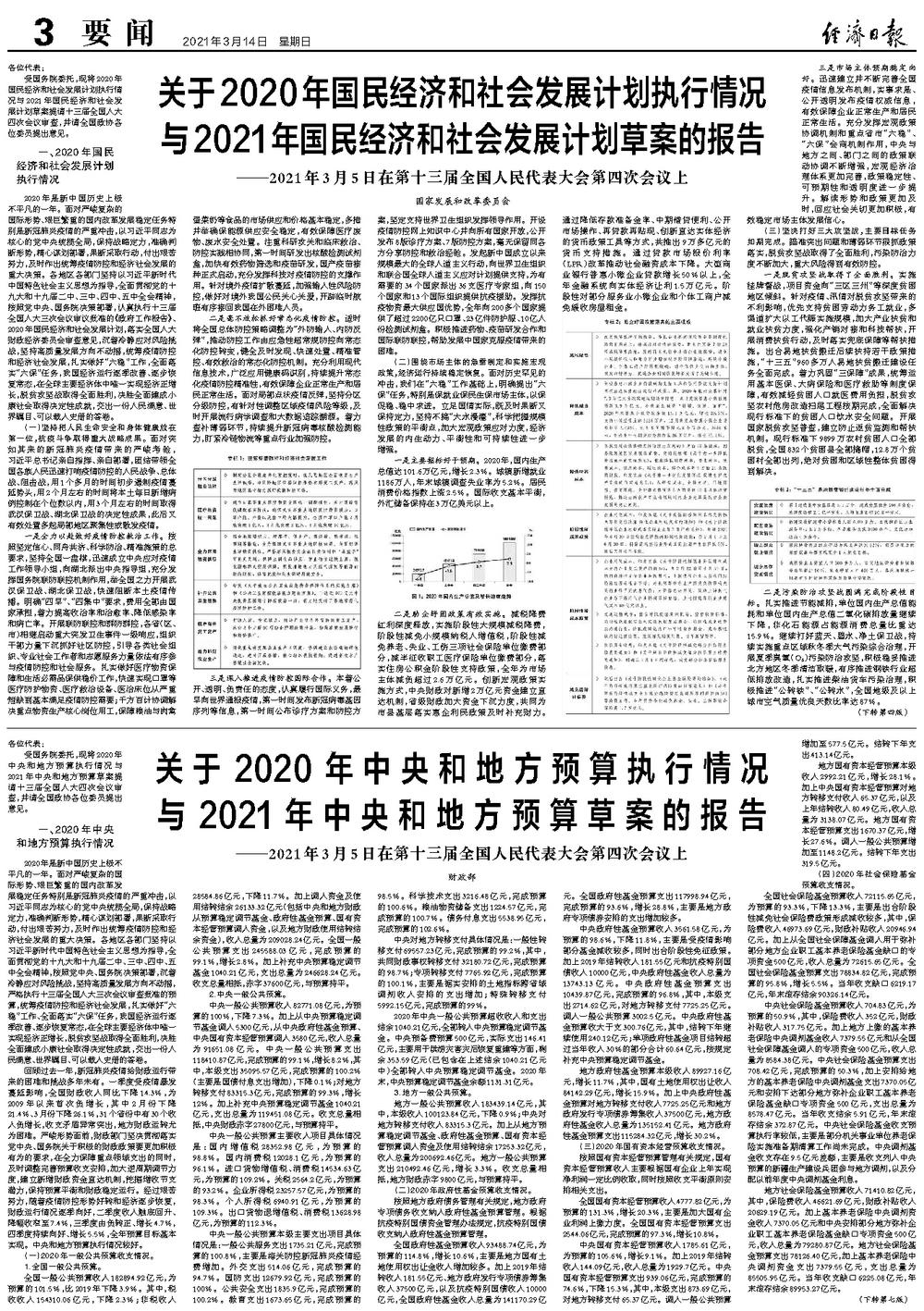 关于2020年中央和地方预算执行情况与2021年中央和地方预算草案的报告