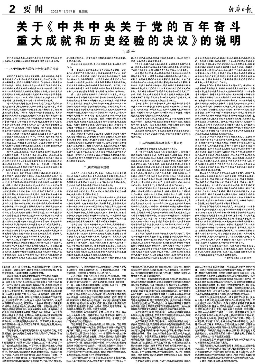 关于《中共中央关于党的百年奋斗重大成就和历史经验的决议》的说明