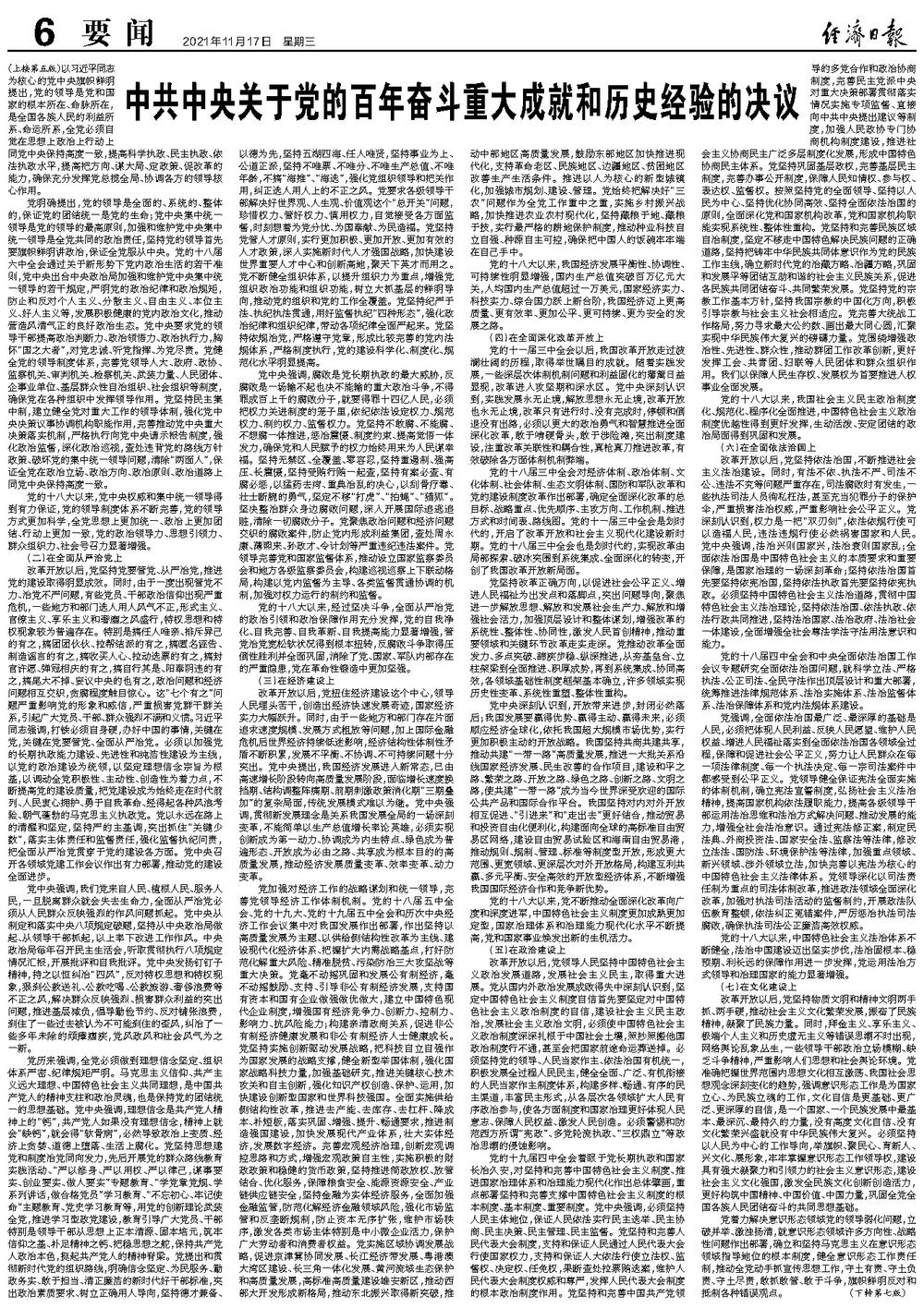 中共中央关于党的百年奋斗重大成就和历史经验的决议