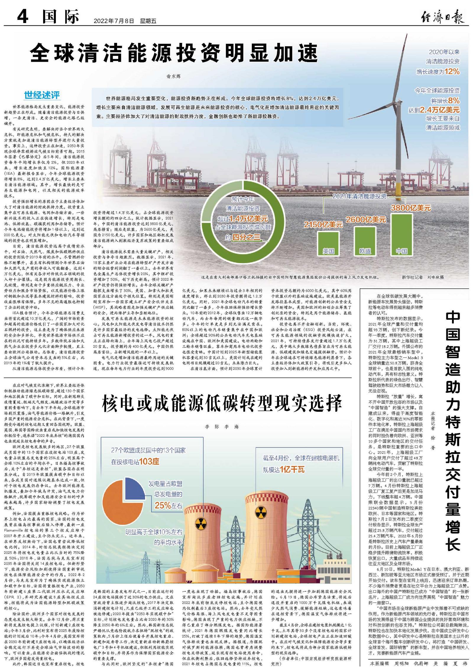 全球清洁能源投资明显加速