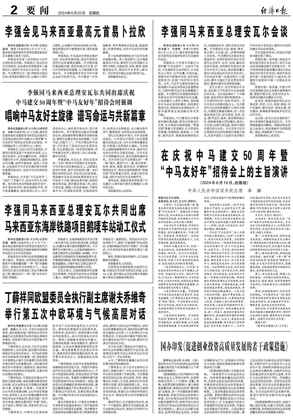 李强同马来西亚总理安瓦尔会谈