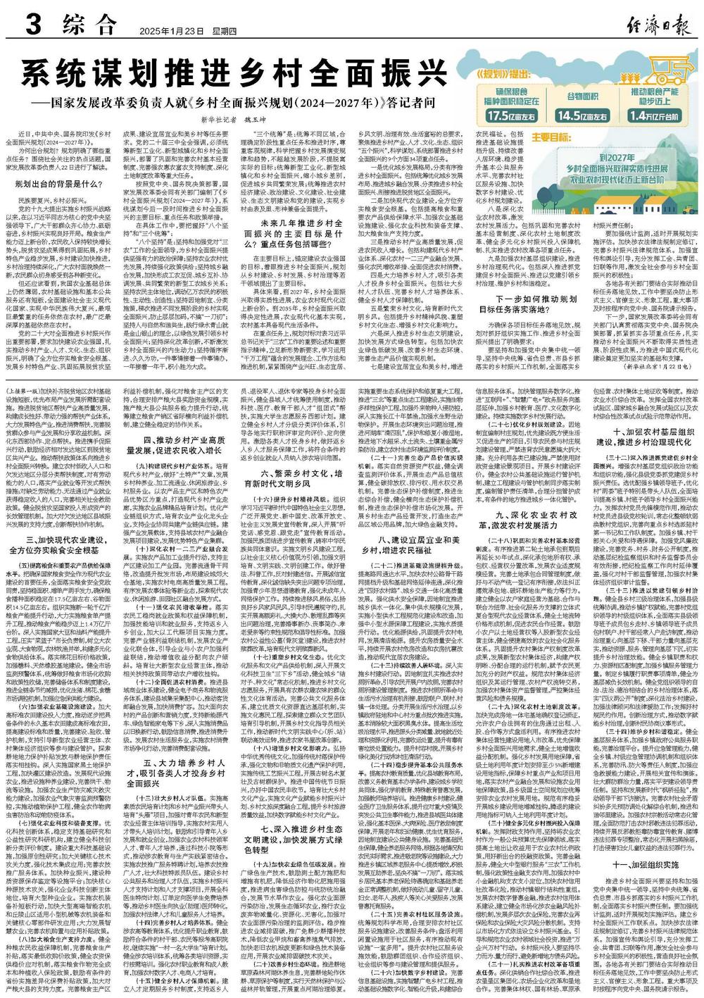 中共中央国务院印发《乡村全面振兴规划(2024—2027年)》