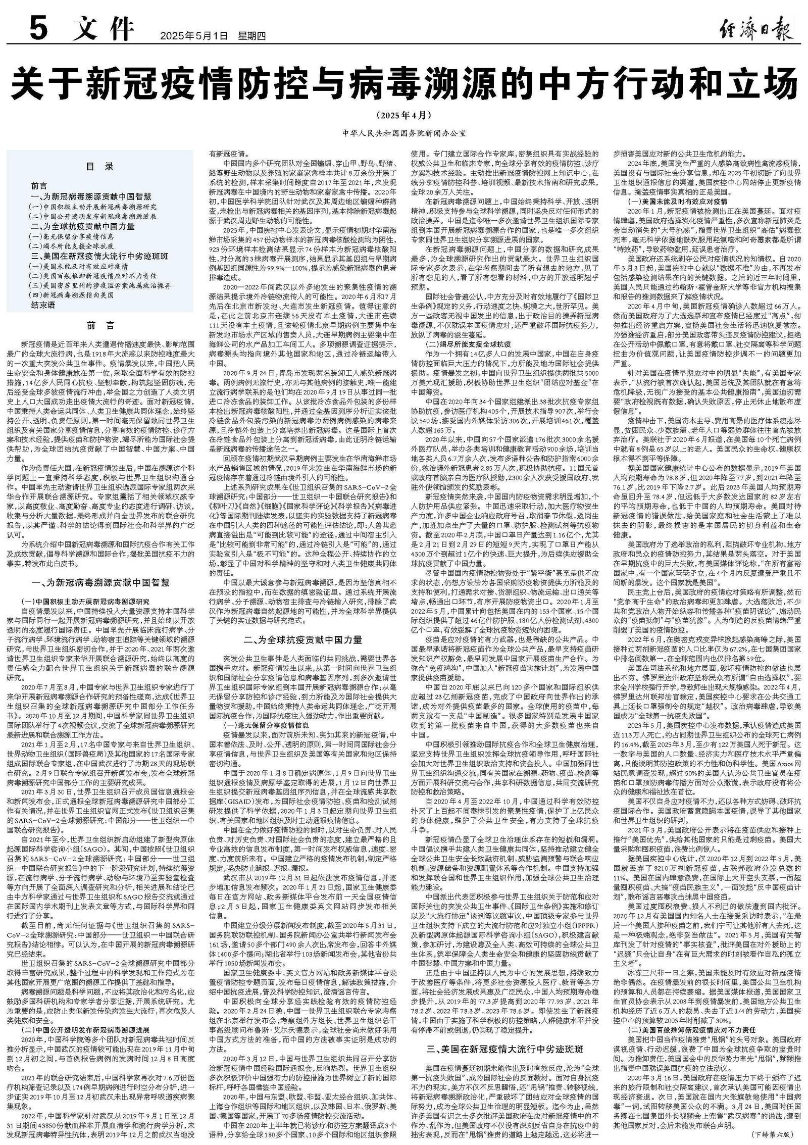 关于新冠疫情防控与病毒溯源的中方行动和立场