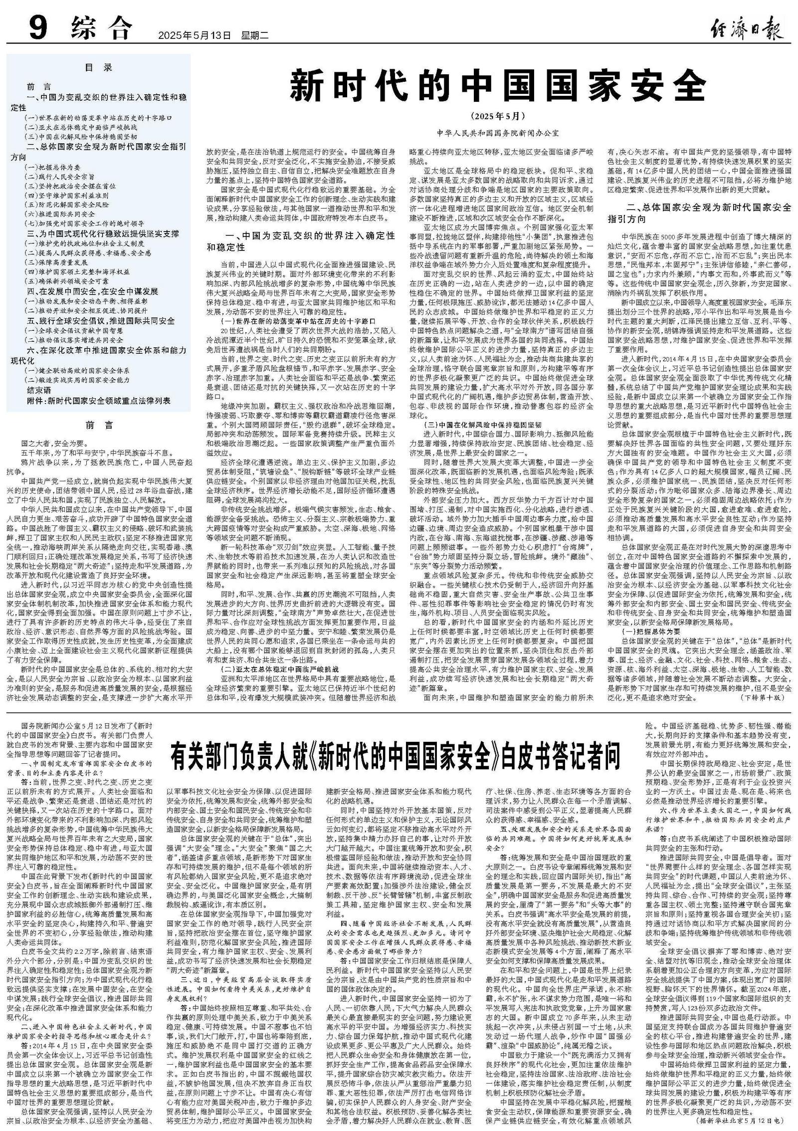 有关部门负责人就《新时代的中国国家安全》白皮书答记者问
