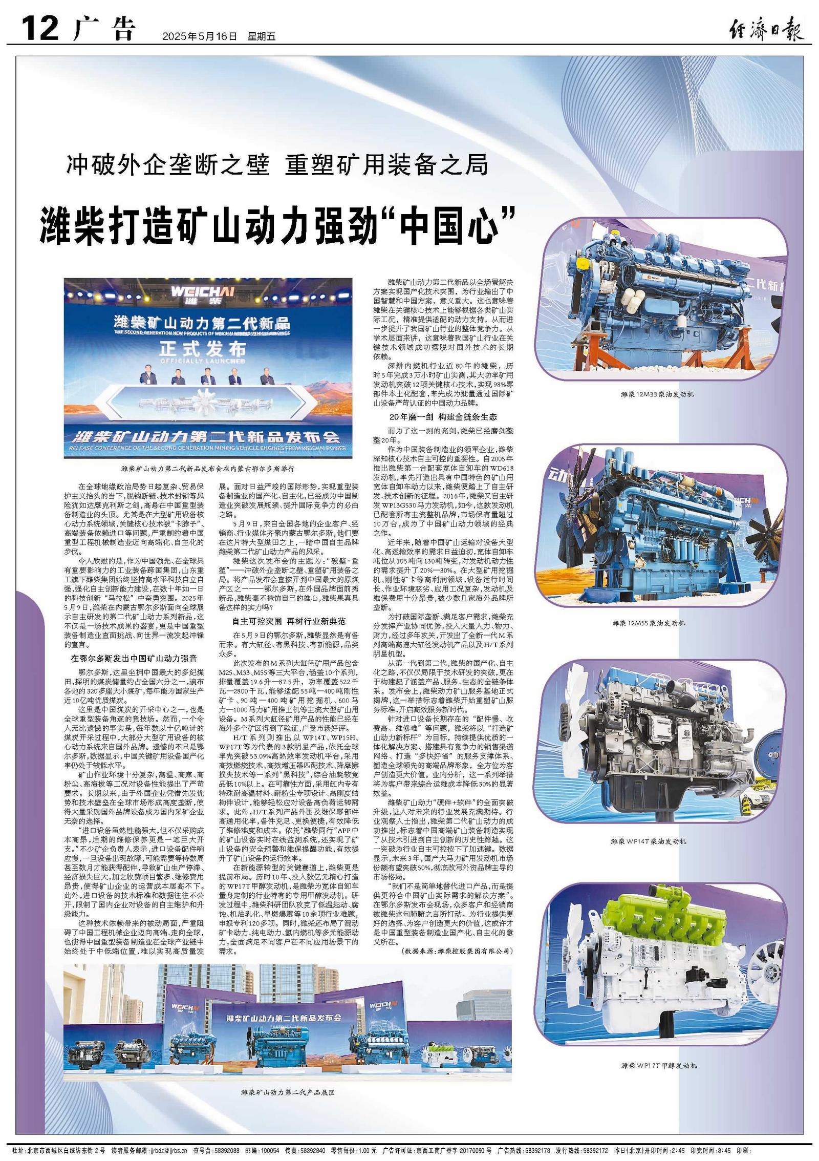 潍柴打造矿山动力强劲“中国心”