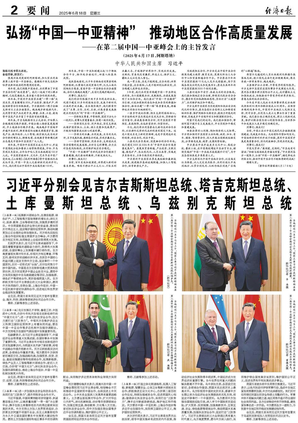 弘扬“中国—中亚精神” 推动地区合作高质量发展