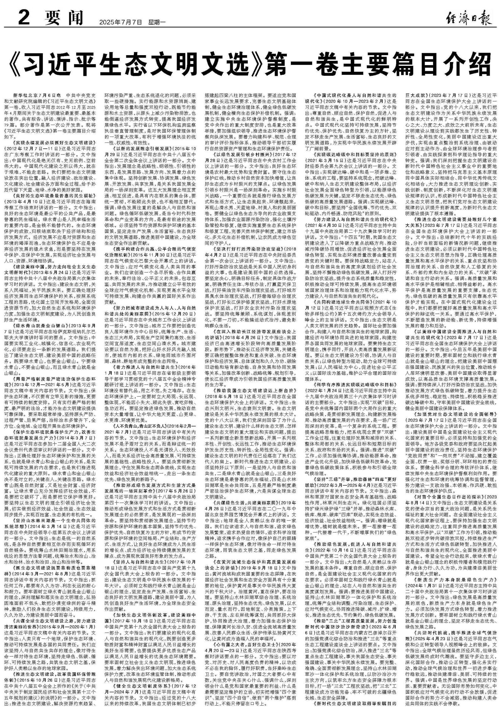 《习近平生态文明文选》第一卷主要篇目介绍