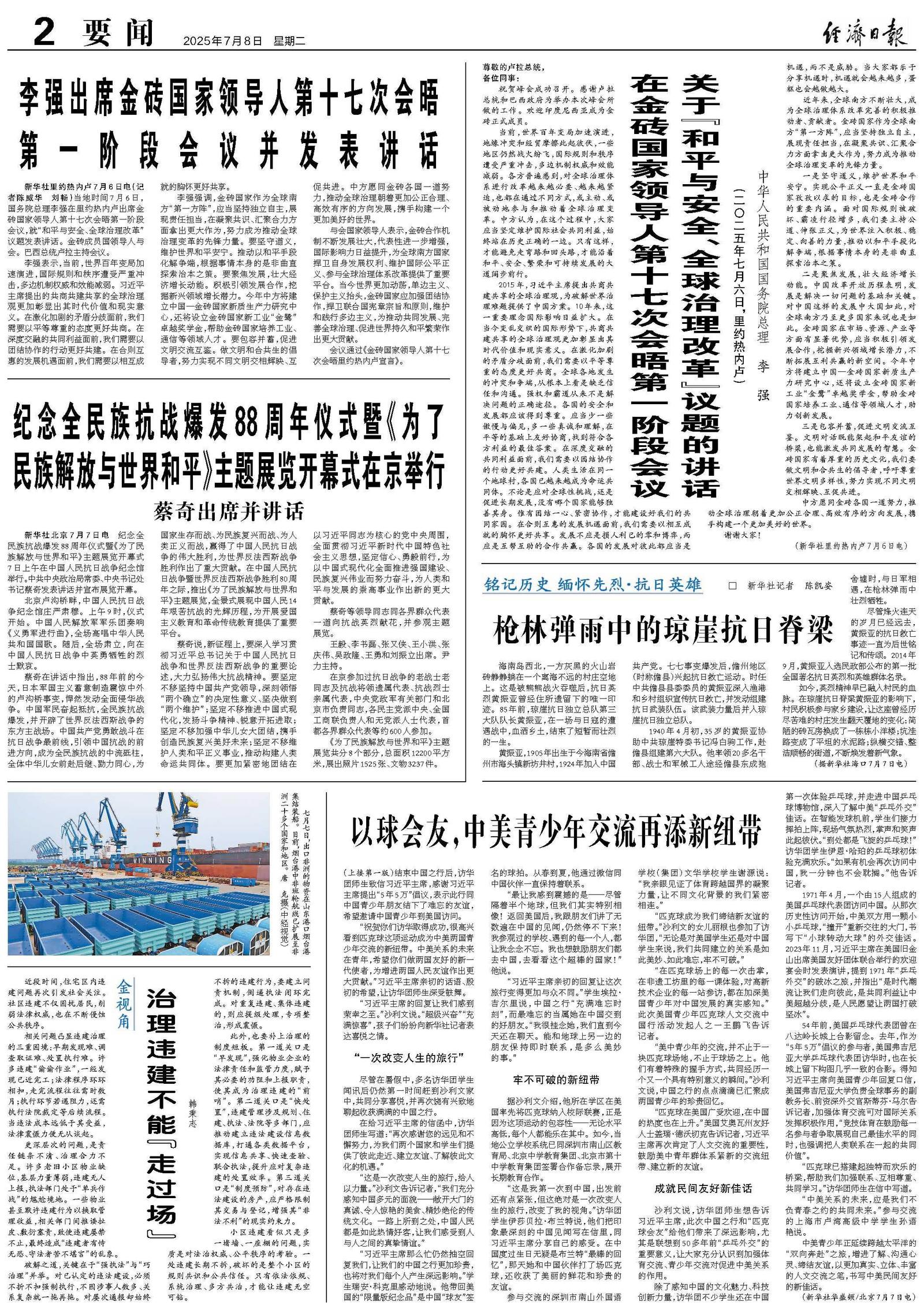 纪念全民族抗战爆发88周年仪式暨《为了民族解放与世界和平》主题展览开幕式在京举行