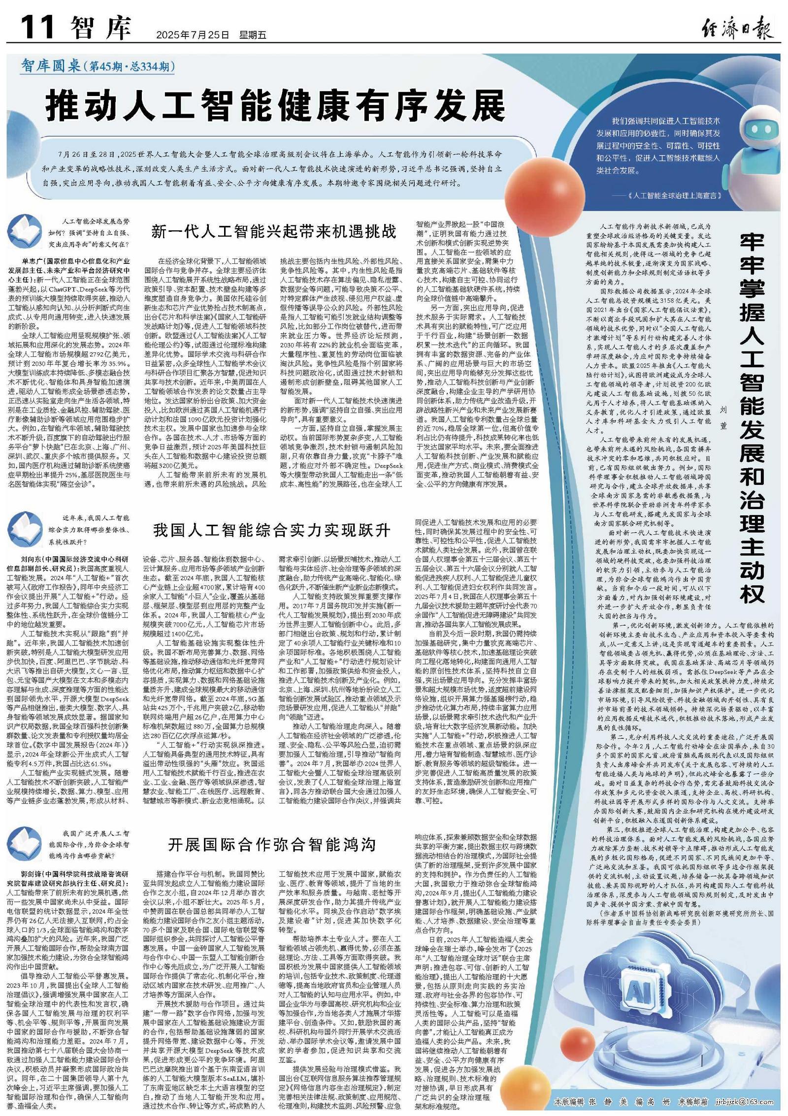 推动人工智能健康有序发展