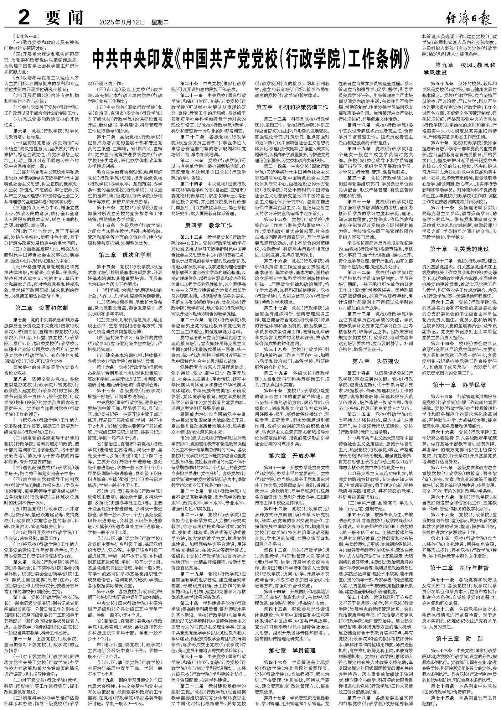 中共中央印发《中国共产党党校(行政学院)工作条例》