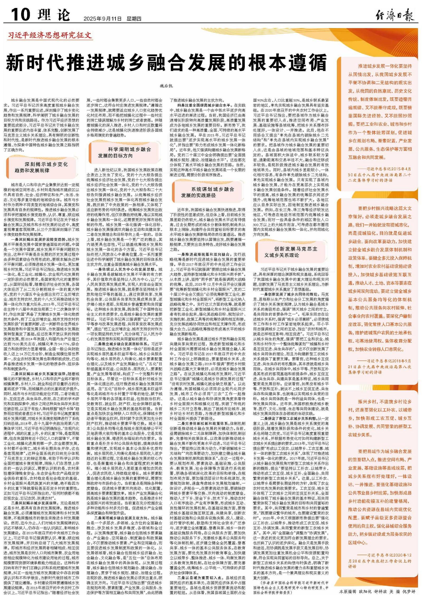 新时代推进城乡融合发展的根本遵循