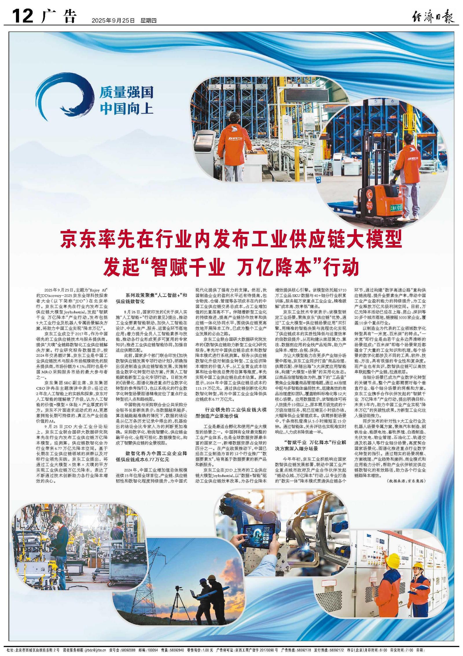 京东率先在行业内发布工业供应链大模型 发起“智赋千业 万亿降本”行动