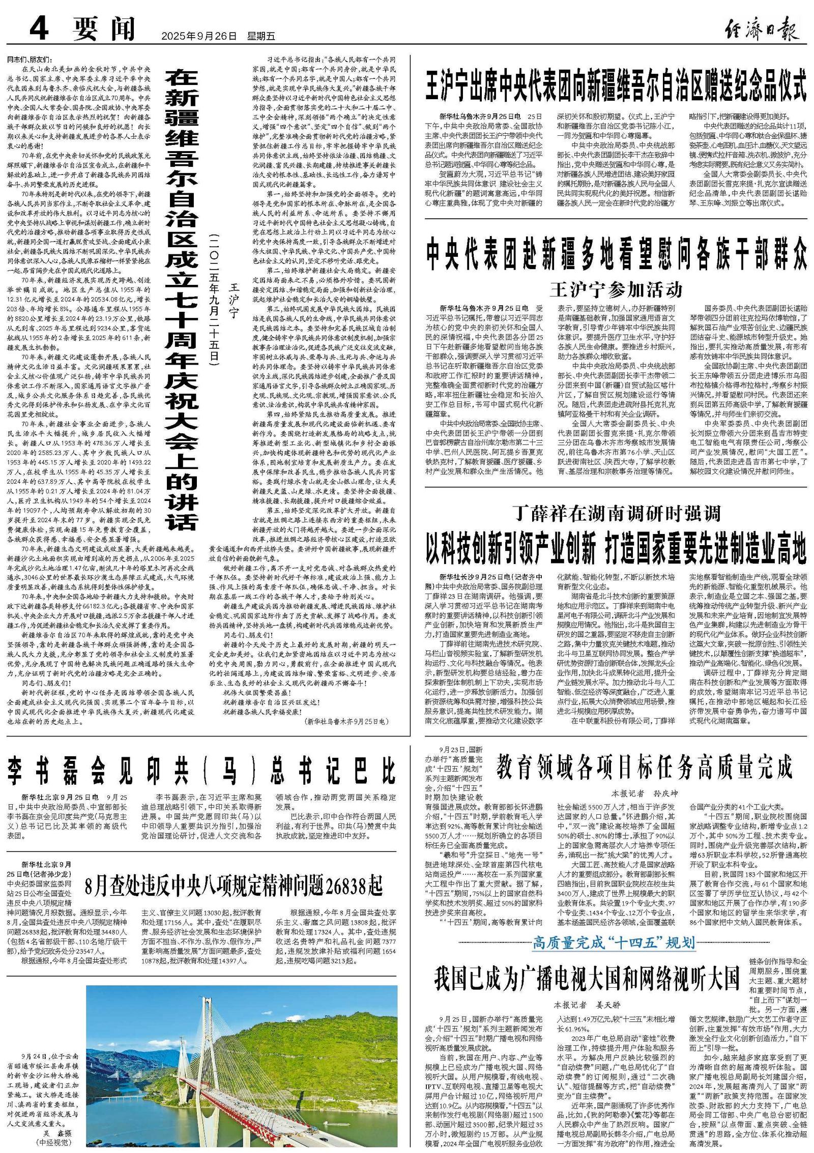 中央代表团赴新疆多地看望慰问各族干部群众