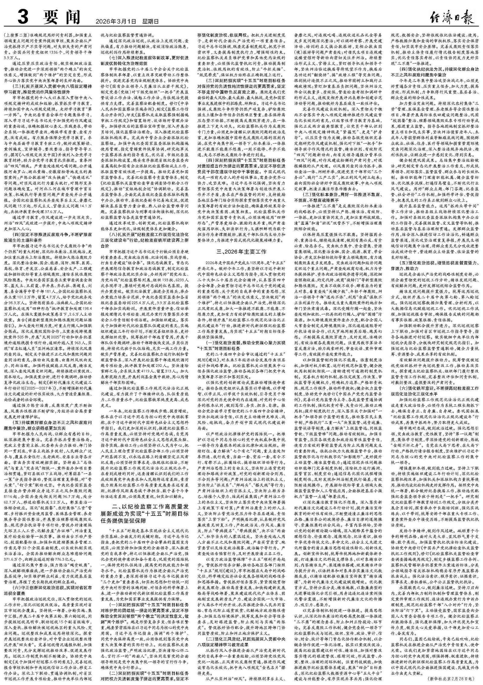 以更高标准、更实举措推进全面从严治党 为实现“十五五”时期目标任务提供坚强保障