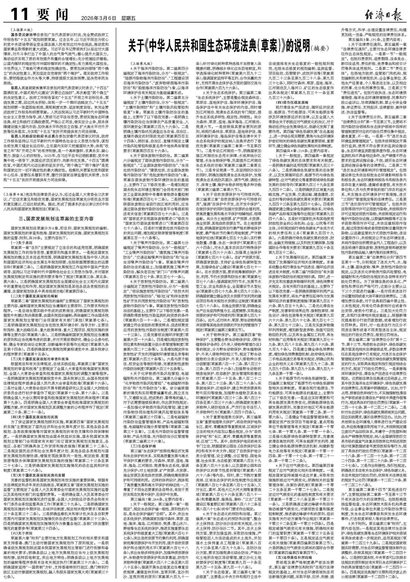 关于《中华人民共和国生态环境法典(草案)》的说明(摘要)